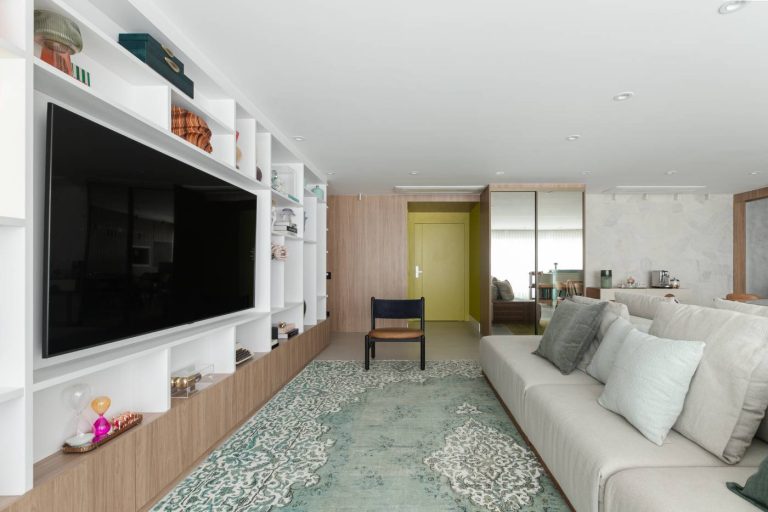 Apartamento de 190 m² ganha personalidade entre tons neutros e cores estratégicas 12 de fevereiro de 2026