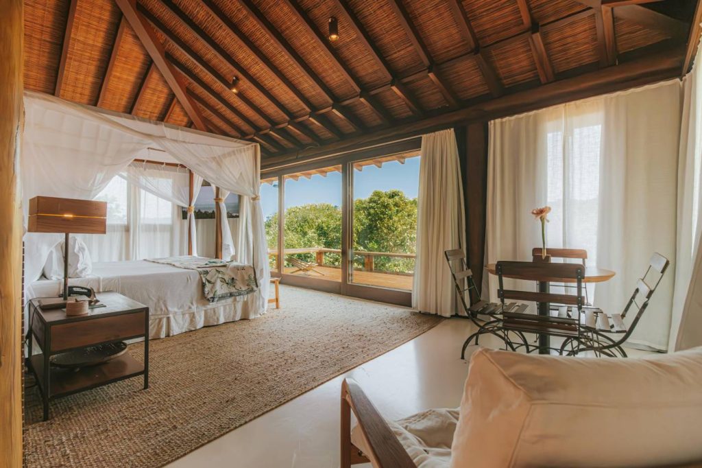 A sofisticação está na matéria e na escala. A piscina voltada para o mar, os espaços abertos e a preservação do entorno reforçam a proposta de refúgio tropical onde o luxo é definido pela integração com a paisagem e pela qualidade do tempo vivido.
