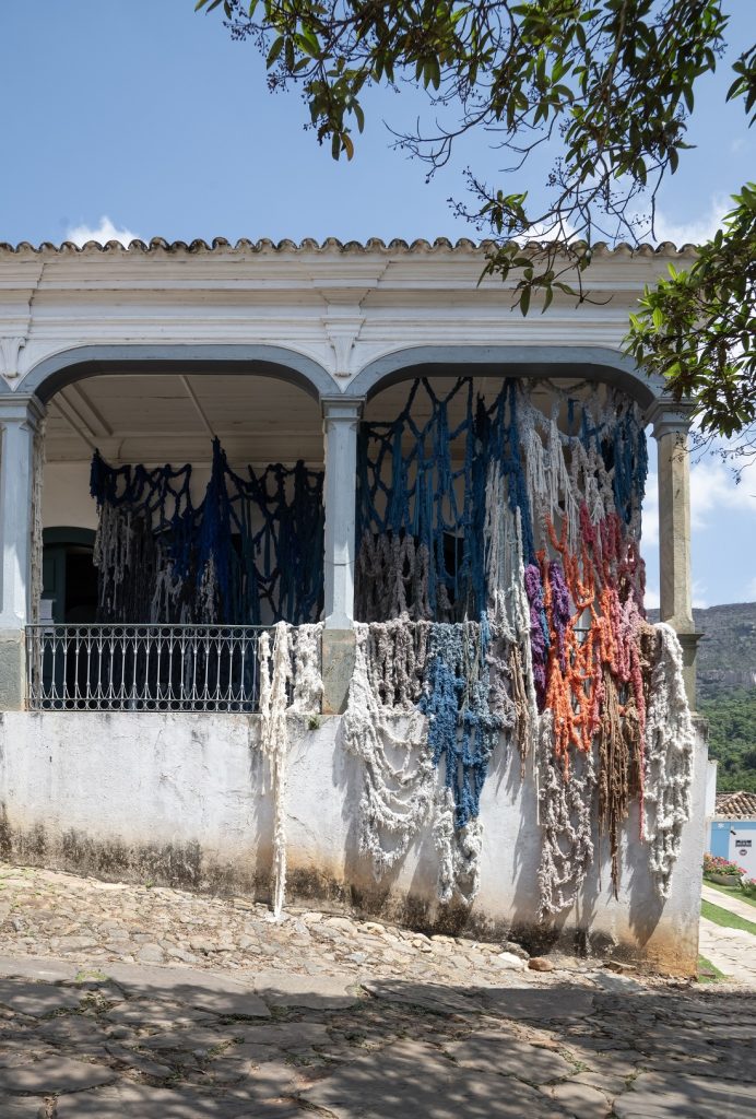 O designer Marcus Camargo, em parceria com o coletivo Mulheres Coralinas, apresentou a instalação “Ponto Raiz”. Feita de tramas, sons e gestos, a obra celebrou o trabalho feminino e as narrativas que nascem das mãos.