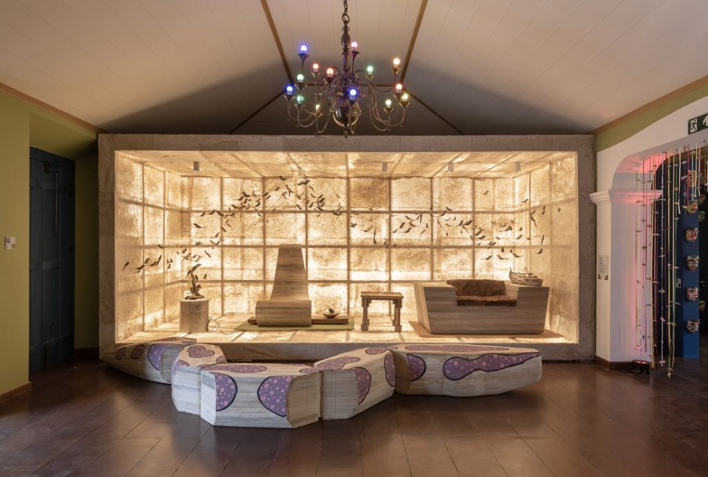 A instalação “Trama Líquida”, do Ateliê Ana Vaz em colaboração com Jacqueline Basílio, utilizou resíduos têxteis para criar uma obra que discute circularidade e consciência ambiental. Um lembrete poético sobre o impacto e a responsabilidade do design.